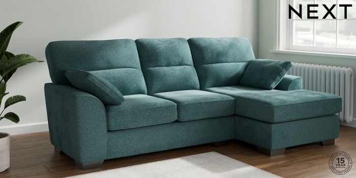 7.2.10 Stamford Highback Medium Sofa Chaise - Right Hand Chunky Chenille Mid Teal Green Large Square Angle - Gunmetal | Made Click here to use our website with more accessibility support, for example screen readers