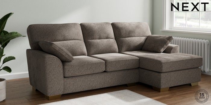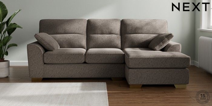 7.2.10 Stamford Highback Medium Sofa Chaise - Right Hand Chunky Chenille Mink Brown Large Square Angle - Brushed Brass | Made Click here to use our website with more accessibility support, for example screen readers