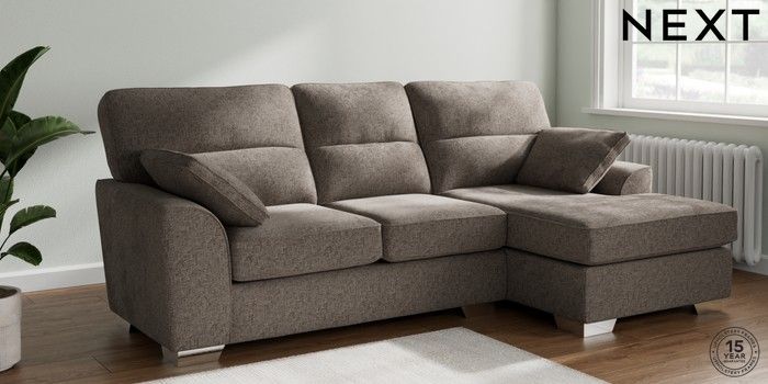 7.2.10 Stamford Highback Medium Sofa Chaise - Right Hand Chunky Chenille Mink Brown Large Square Angle - Chrome Metal | Made Click here to use our website with more accessibility support, for example screen readers