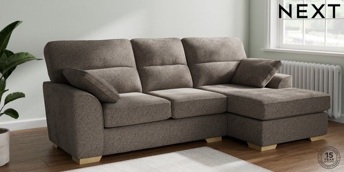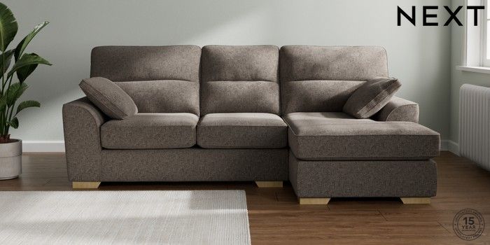 7.2.10 Stamford Highback Medium Sofa Chaise - Right Hand Chunky Chenille Mink Brown Large Square Angle - Light | Made Click here to use our website with more accessibility support, for example screen readers