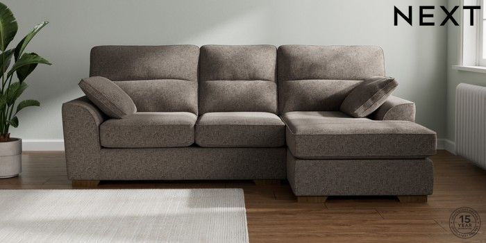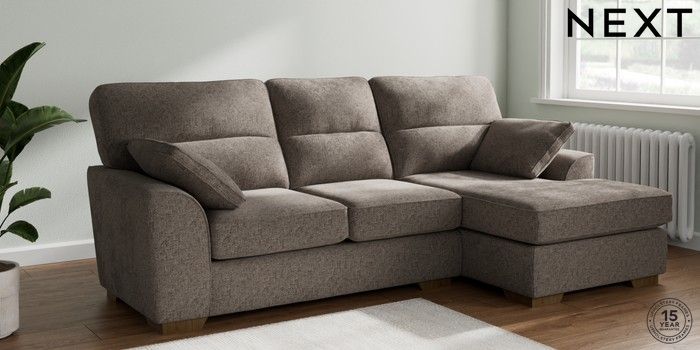 7.2.10 Stamford Highback Medium Sofa Chaise - Right Hand Chunky Chenille Mink Brown Large Square Angle - Mid | Made Click here to use our website with more accessibility support, for example screen readers