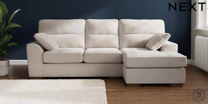 7.2.10 Stamford Highback Medium Sofa Chaise - Right Hand Chunky Chenille Oyster Large Square Angle - Mid | Made Click here to use our website with more accessibility support, for example screen readers