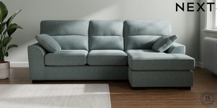 7.2.10 Stamford Highback Medium Sofa Chaise - Right Hand Chunky Marl Mid Blue Large Square Angle - Dark | Made Click here to use our website with more accessibility support, for example screen readers