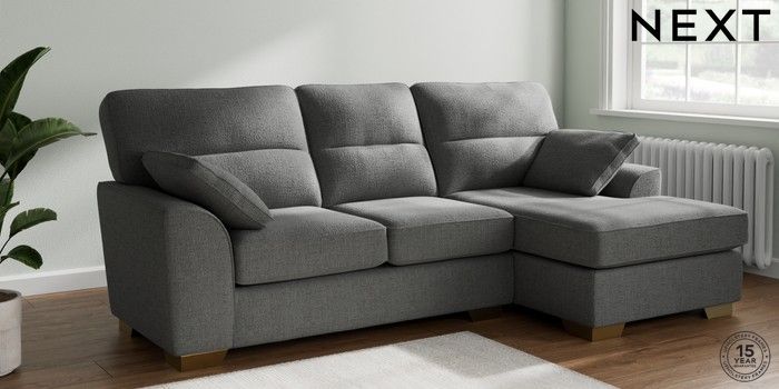 7.2.10 Stamford Highback Medium Sofa Chaise - Right Hand Chunky Texture Dark Grey Large Square Angle - Brushed Brass | Made Click here to use our website with more accessibility support, for example screen readers