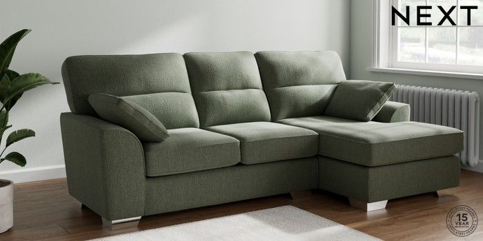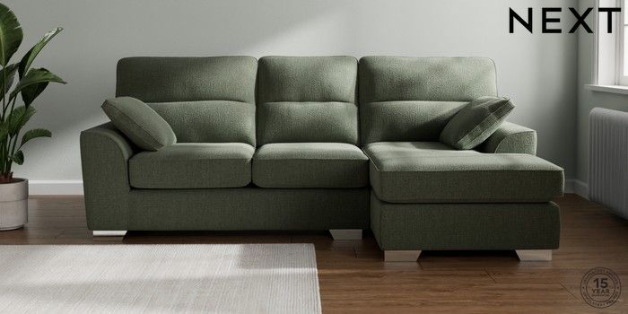 7.2.10 Stamford Highback Medium Sofa Chaise - Right Hand Chunky Texture Mid Forest Green Large Square Angle - Chrome Metal | Made Click here to use our website with more accessibility support, for example screen readers