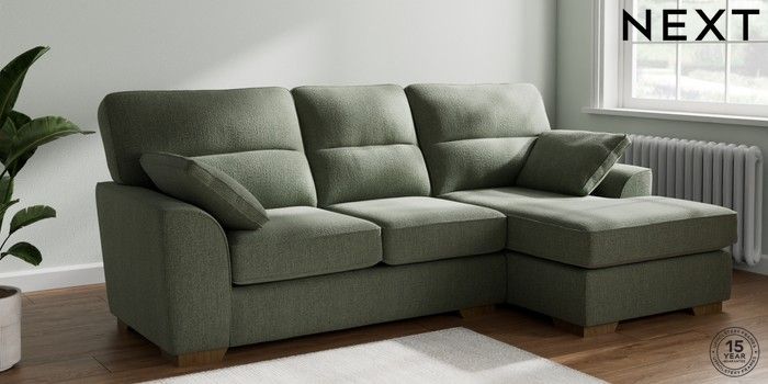 7.2.10 Stamford Highback Medium Sofa Chaise - Right Hand Chunky Texture Mid Forest Green Large Square Angle - Mid | Made Click here to use our website with more accessibility support, for example screen readers