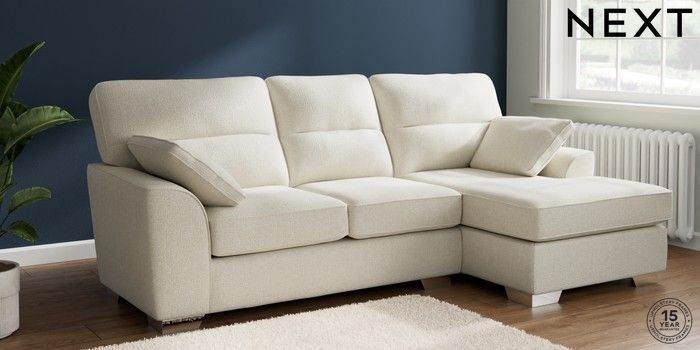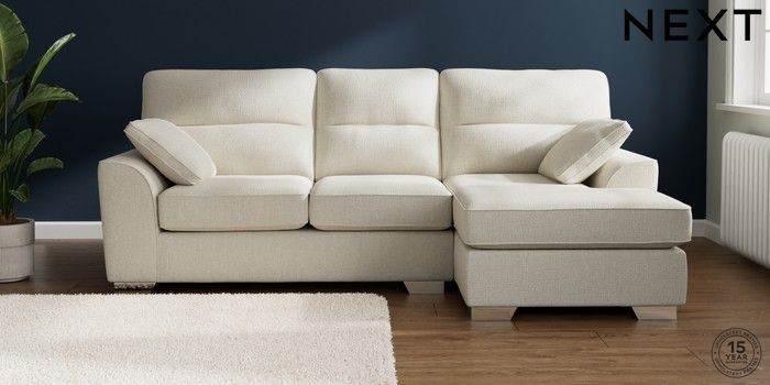 7.2.10 Stamford Highback Medium Sofa Chaise - Right Hand Chunky Texture Oyster Large Square Angle - Chrome Metal | Made Click here to use our website with more accessibility support, for example screen readers