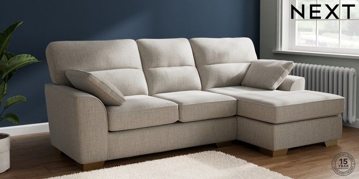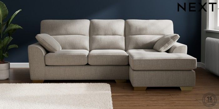 7.2.10 Stamford Highback Medium Sofa Chaise - Right Hand Chunky Weave Dove Grey Large Square Angle - Brushed Brass | Made Click here to use our website with more accessibility support, for example screen readers