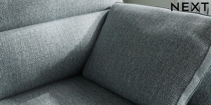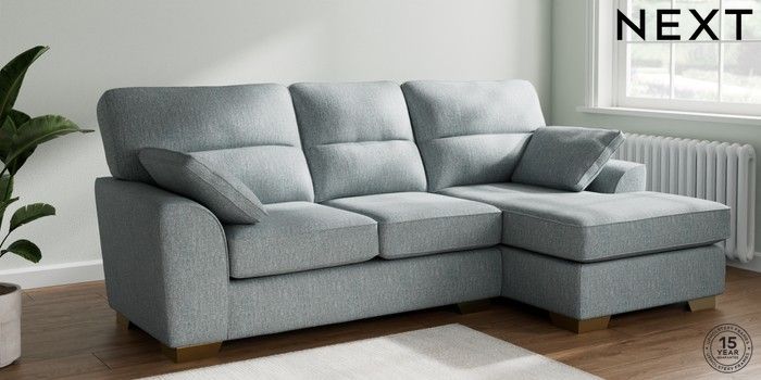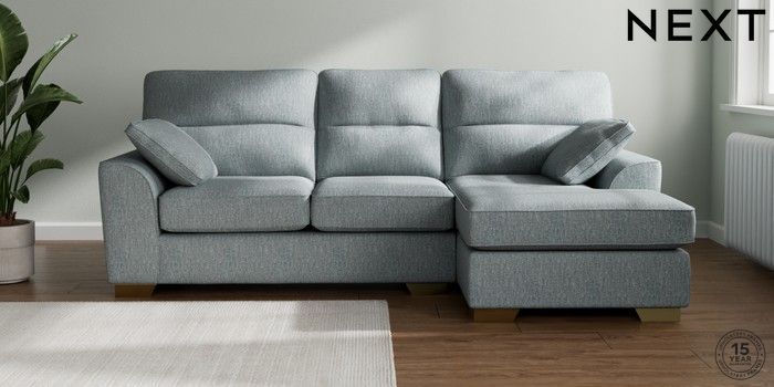 7.2.10 Stamford Highback Medium Sofa Chaise - Right Hand Chunky Weave Mid Blue Large Square Angle - Brushed Brass | Made Click here to use our website with more accessibility support, for example screen readers