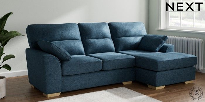 7.2.10 Stamford Highback Medium Sofa Chaise - Right Hand Cotswold Chenille Dark Blue Large Square Angle - Light | Made Click here to use our website with more accessibility support, for example screen readers