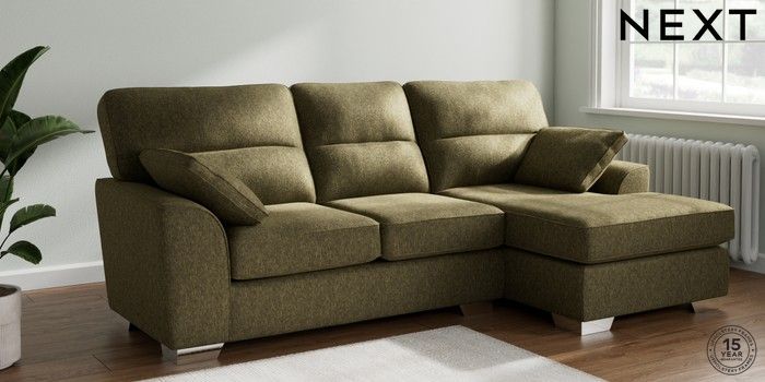 7.2.10 Stamford Highback Medium Sofa Chaise - Right Hand Cotswold Chenille Dark Green Large Square Angle - Chrome Metal | Made Click here to use our website with more accessibility support, for example screen readers