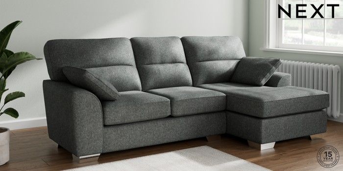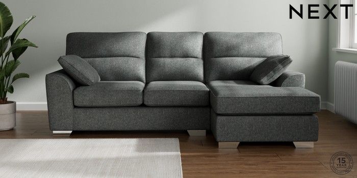 7.2.10 Stamford Highback Medium Sofa Chaise - Right Hand Cotswold Chenille Dark Grey Large Square Angle - Chrome Metal | Made Click here to use our website with more accessibility support, for example screen readers