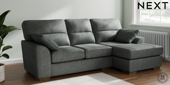 7.2.10 Stamford Highback Medium Sofa Chaise - Right Hand Cotswold Chenille Dark Grey Large Square Angle - Mid | Made Click here to use our website with more accessibility support, for example screen readers