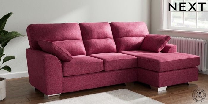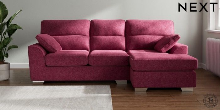 7.2.10 Stamford Highback Medium Sofa Chaise - Right Hand Cotswold Chenille Dark Raspberry Pink Large Square Angle - Chrome Metal | Made Click here to use our website with more accessibility support, for example screen readers