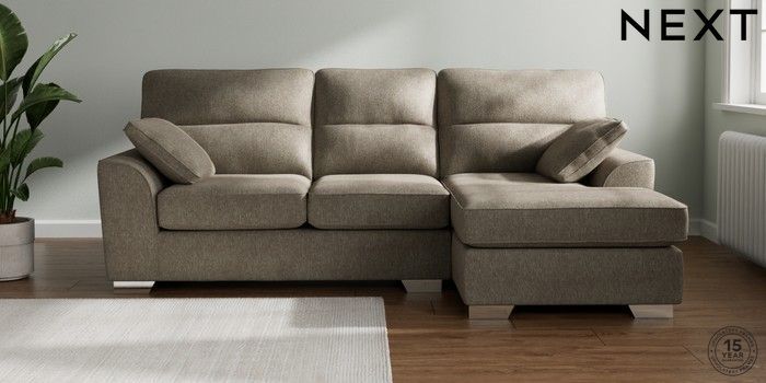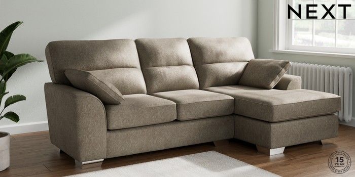 7.2.10 Stamford Highback Medium Sofa Chaise - Right Hand Cotswold Chenille Mid Mink Brown Large Square Angle - Chrome Metal | Made Click here to use our website with more accessibility support, for example screen readers