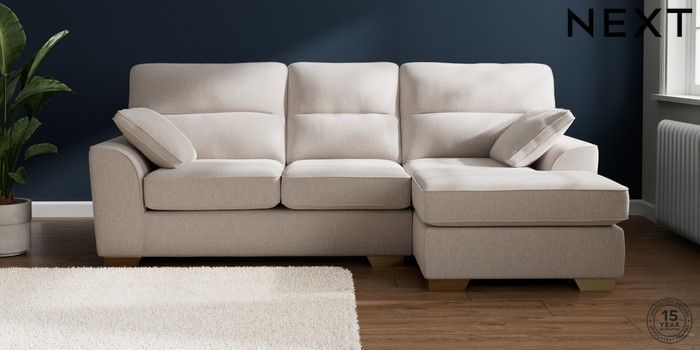 7.2.10 Stamford Highback Medium Sofa Chaise - Right Hand Cotswold Chenille Oyster Large Square Angle - Brushed Brass | Made Click here to use our website with more accessibility support, for example screen readers
