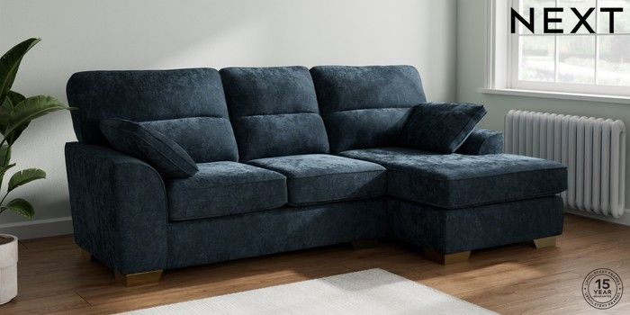 7.2.10 Stamford Highback Medium Sofa Chaise - Right Hand Distressed Velour Midnight Blue Large Square Angle - Brushed Brass | Made Click here to use our website with more accessibility support, for example screen readers