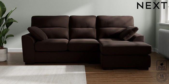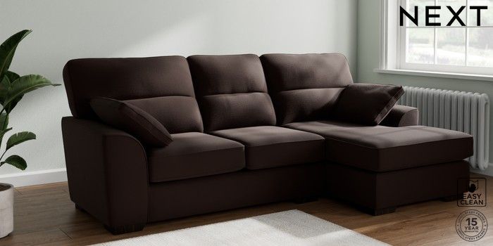 7.2.10 Stamford Highback Medium Sofa Chaise - Right Hand Fine Chenille Easy Clean Chocolate Brown Large Square Angle - Dark | Made Click here to use our website with more accessibility support, for example screen readers