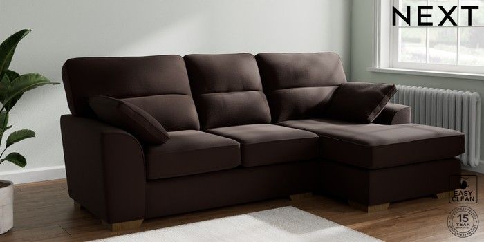 7.2.10 Stamford Highback Medium Sofa Chaise - Right Hand Fine Chenille Easy Clean Chocolate Brown Large Square Angle - Mid | Made Click here to use our website with more accessibility support, for example screen readers
