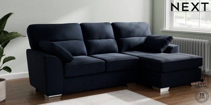 7.2.10 Stamford Highback Medium Sofa Chaise - Right Hand Fine Chenille Easy Clean Dark Navy Blue Large Square Angle - Chrome Metal | Made Click here to use our website with more accessibility support, for example screen readers