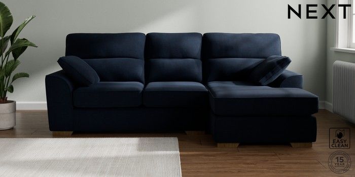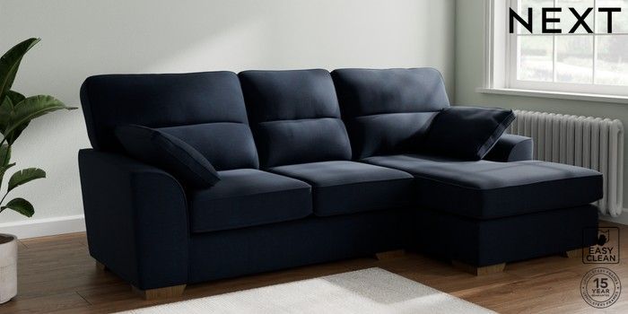 7.2.10 Stamford Highback Medium Sofa Chaise - Right Hand Fine Chenille Easy Clean Dark Navy Blue Large Square Angle - Mid | Made Click here to use our website with more accessibility support, for example screen readers