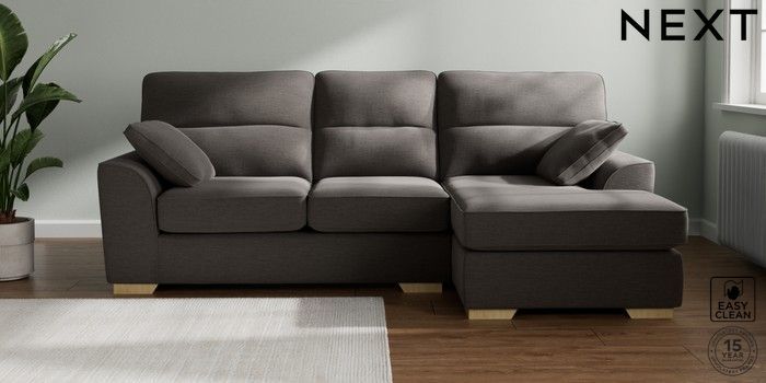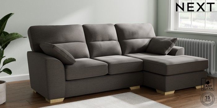 7.2.10 Stamford Highback Medium Sofa Chaise - Right Hand Fine Chenille Easy Clean Dark Smoke Grey Large Square Angle - Light | Made Click here to use our website with more accessibility support, for example screen readers