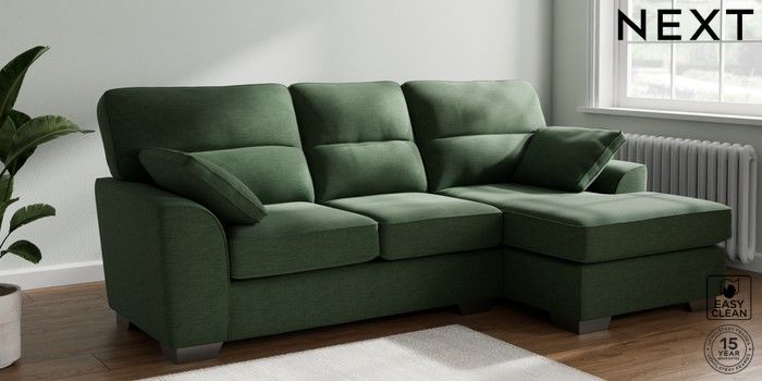 7.2.10 Stamford Highback Medium Sofa Chaise - Right Hand Fine Chenille Easy Clean Mid Khaki Green Large Square Angle - Gunmetal | Made Click here to use our website with more accessibility support, for example screen readers