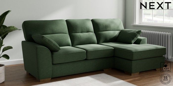 7.2.10 Stamford Highback Medium Sofa Chaise - Right Hand Fine Chenille Easy Clean Mid Khaki Green Large Square Angle - Mid | Made Click here to use our website with more accessibility support, for example screen readers