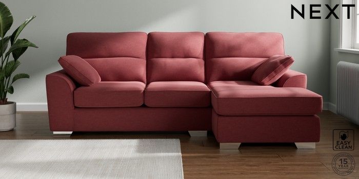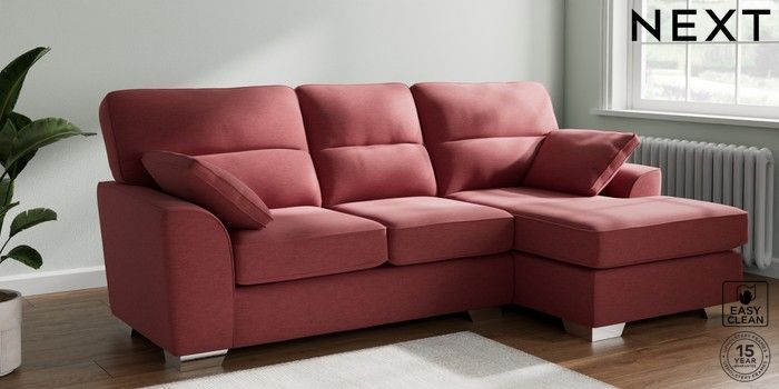 7.2.10 Stamford Highback Medium Sofa Chaise - Right Hand Fine Chenille Easy Clean Mid Pink Large Square Angle - Chrome Metal | Made Click here to use our website with more accessibility support, for example screen readers
