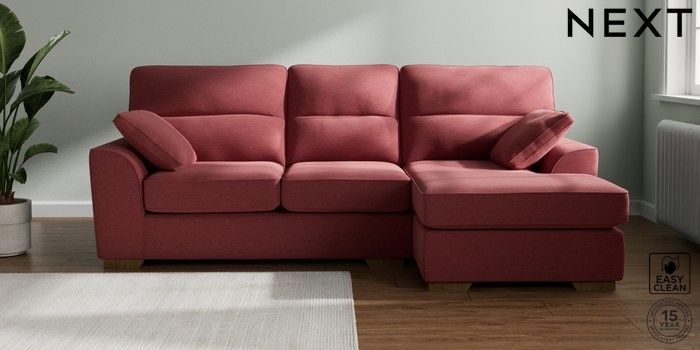 7.2.10 Stamford Highback Medium Sofa Chaise - Right Hand Fine Chenille Easy Clean Mid Pink Large Square Angle - Mid | Made Click here to use our website with more accessibility support, for example screen readers