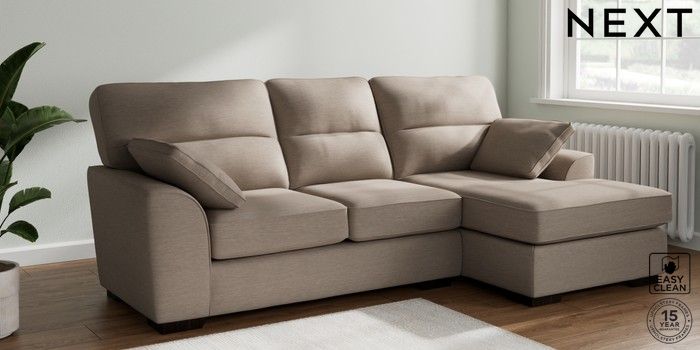 7.2.10 Stamford Highback Medium Sofa Chaise - Right Hand Fine Chenille Easy Clean Mid Taupe Brown Large Square Angle - Dark | Made Click here to use our website with more accessibility support, for example screen readers