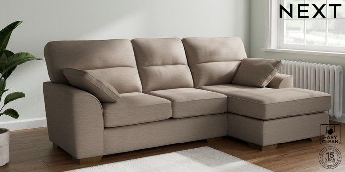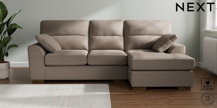 7.2.10 Stamford Highback Medium Sofa Chaise - Right Hand Fine Chenille Easy Clean Mid Taupe Brown Large Square Angle - Mid | Made Click here to use our website with more accessibility support, for example screen readers