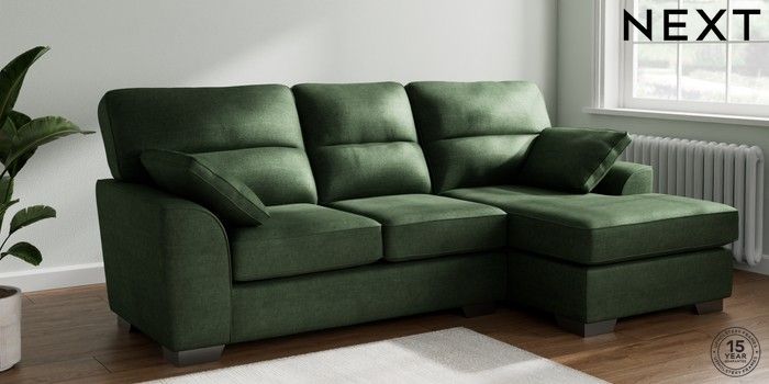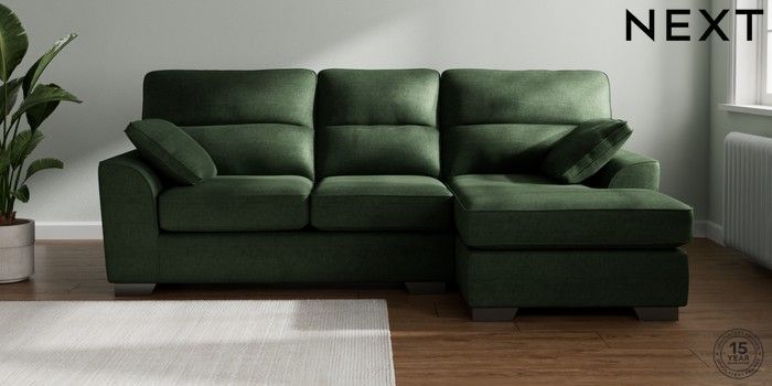 7.2.10 Stamford Highback Medium Sofa Chaise - Right Hand Luxe Chenille Dark Green Large Square Angle - Gunmetal | Made Click here to use our website with more accessibility support, for example screen readers