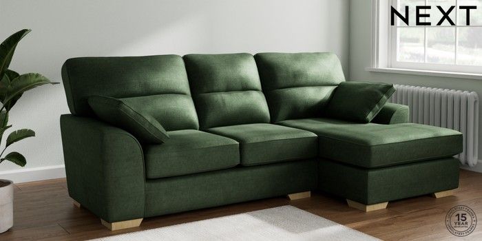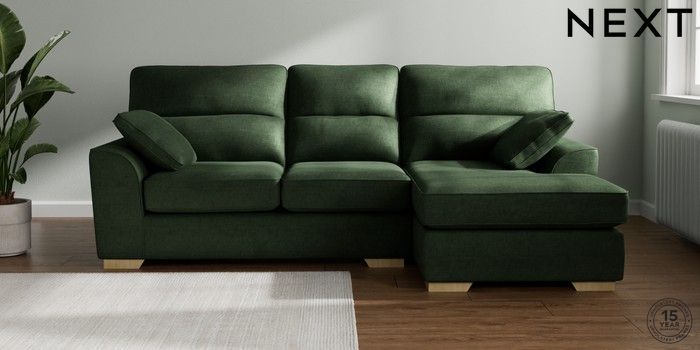 7.2.10 Stamford Highback Medium Sofa Chaise - Right Hand Luxe Chenille Dark Green Large Square Angle - Light | Made Click here to use our website with more accessibility support, for example screen readers