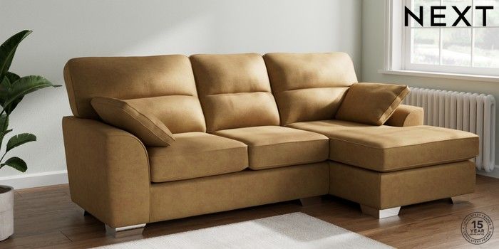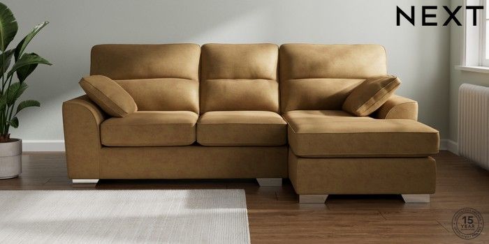 7.2.10 Stamford Highback Medium Sofa Chaise - Right Hand Luxe Chenille Honey Yellow Large Square Angle - Chrome Metal | Made Click here to use our website with more accessibility support, for example screen readers