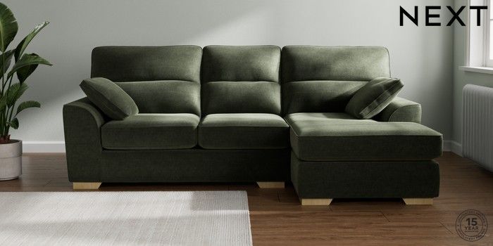 7.2.10 Stamford Highback Medium Sofa Chaise - Right Hand Luxe Chenille Mid Green Large Square Angle - Light | Made Click here to use our website with more accessibility support, for example screen readers