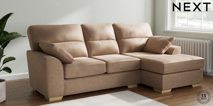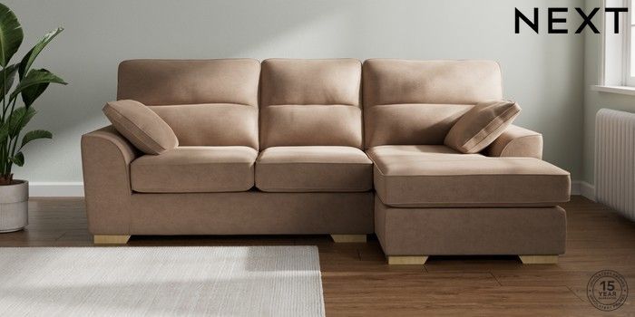 7.2.10 Stamford Highback Medium Sofa Chaise - Right Hand Luxe Chenille Mid Natural Large Square Angle - Light | Made Click here to use our website with more accessibility support, for example screen readers