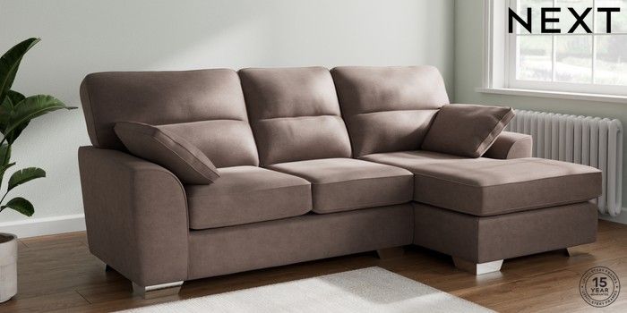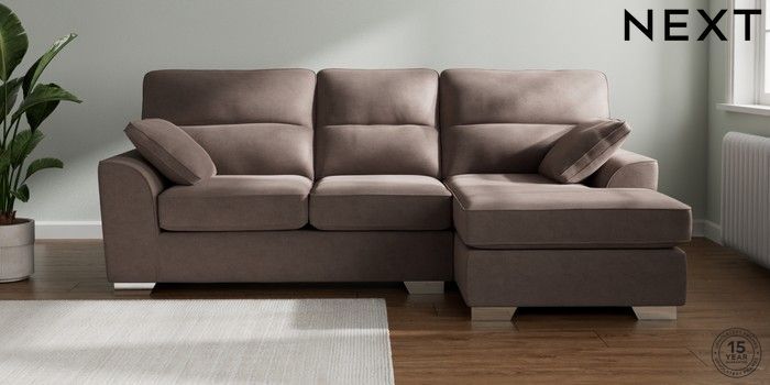 7.2.10 Stamford Highback Medium Sofa Chaise - Right Hand Luxe Chenille Mink Brown Large Square Angle - Chrome Metal | Made Click here to use our website with more accessibility support, for example screen readers