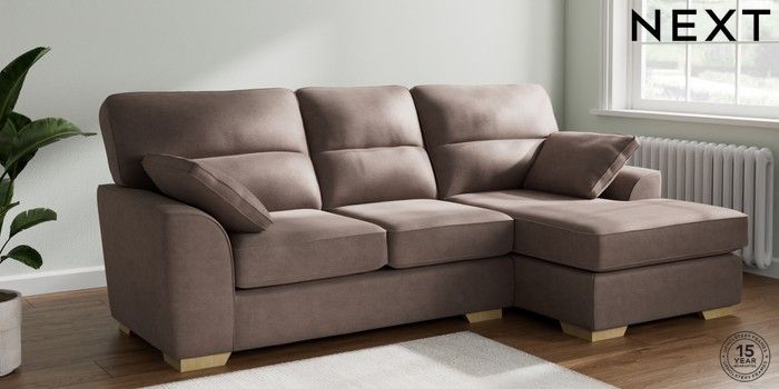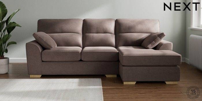 7.2.10 Stamford Highback Medium Sofa Chaise - Right Hand Luxe Chenille Mink Brown Large Square Angle - Light | Made Click here to use our website with more accessibility support, for example screen readers