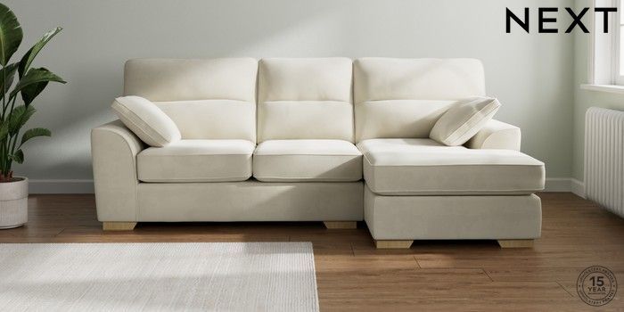 7.2.10 Stamford Highback Medium Sofa Chaise - Right Hand Luxe Chenille Oyster Large Square Angle - Light | Made Click here to use our website with more accessibility support, for example screen readers