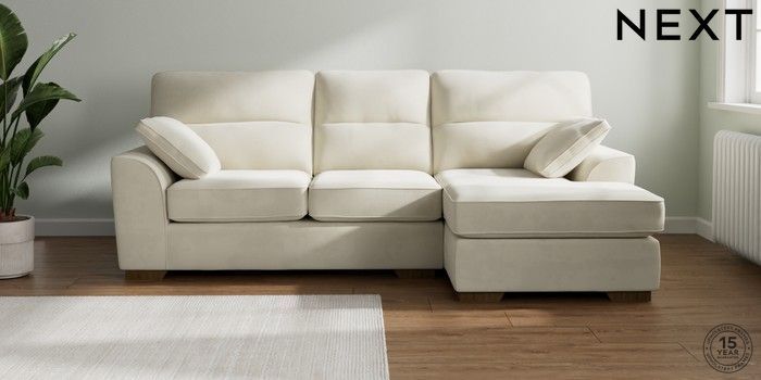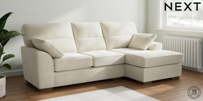 7.2.10 Stamford Highback Medium Sofa Chaise - Right Hand Luxe Chenille Oyster Large Square Angle - Mid | Made Click here to use our website with more accessibility support, for example screen readers