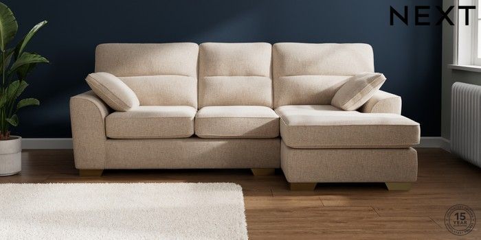 7.2.10 Stamford Highback Medium Sofa Chaise - Right Hand Multi Weave Mid Natural Large Square Angle - Brushed Brass | Made Click here to use our website with more accessibility support, for example screen readers