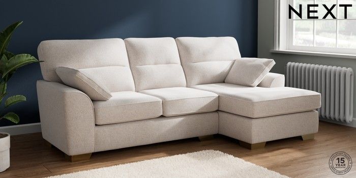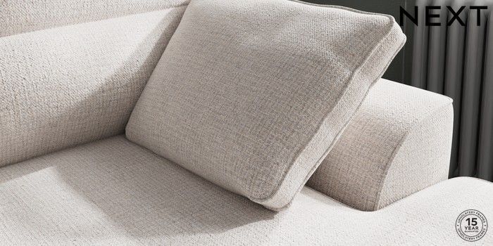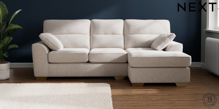7.2.10 Stamford Highback Medium Sofa Chaise - Right Hand Multi Weave Oyster Large Square Angle - Brushed Brass | Made Click here to use our website with more accessibility support, for example screen readers