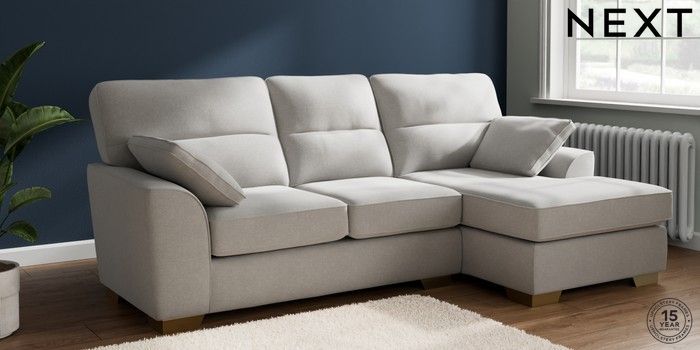 7.2.10 Stamford Highback Medium Sofa Chaise - Right Hand Natural Mix Light Grey Large Square Angle - Brushed Brass | Made Click here to use our website with more accessibility support, for example screen readers