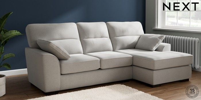 7.2.10 Stamford Highback Medium Sofa Chaise - Right Hand Natural Mix Light Grey Large Square Angle - Dark | Made Click here to use our website with more accessibility support, for example screen readers