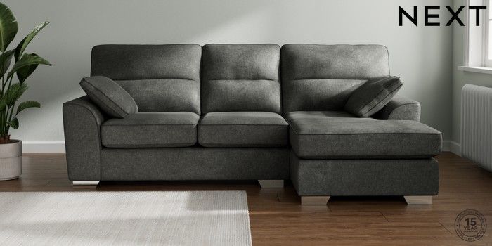 7.2.10 Stamford Highback Medium Sofa Chaise - Right Hand Plush Chenille Dark Grey Large Square Angle - Chrome Metal | Made Click here to use our website with more accessibility support, for example screen readers