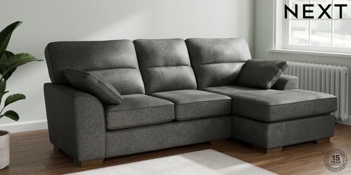 7.2.10 Stamford Highback Medium Sofa Chaise - Right Hand Plush Chenille Dark Grey Large Square Angle - Mid | Made Click here to use our website with more accessibility support, for example screen readers