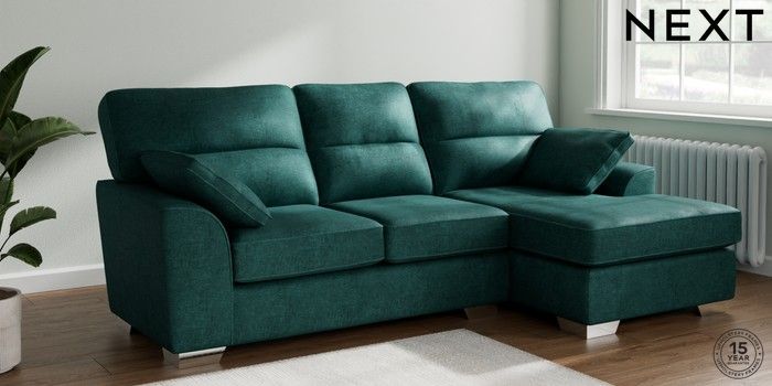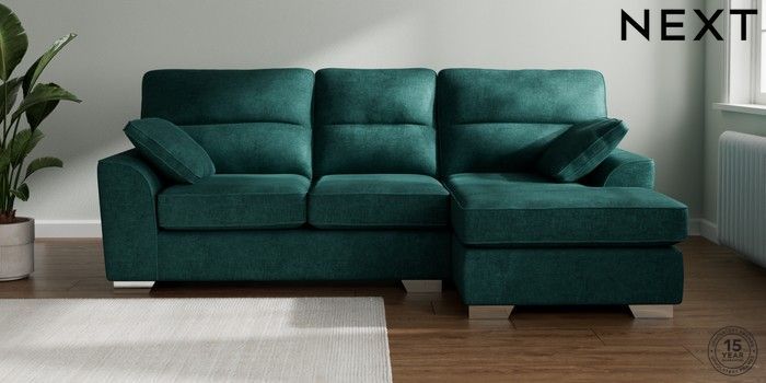 7.2.10 Stamford Highback Medium Sofa Chaise - Right Hand Plush Chenille Dark Teal Green Large Square Angle - Chrome Metal | Made Click here to use our website with more accessibility support, for example screen readers