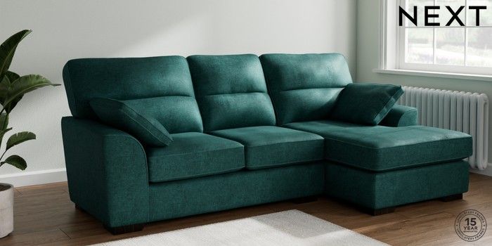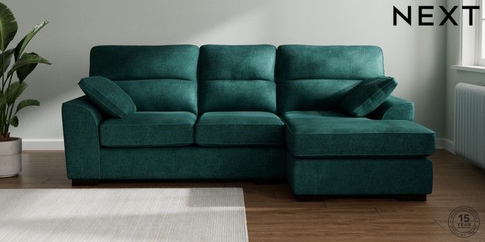 7.2.10 Stamford Highback Medium Sofa Chaise - Right Hand Plush Chenille Dark Teal Green Large Square Angle - Dark | Made Click here to use our website with more accessibility support, for example screen readers
