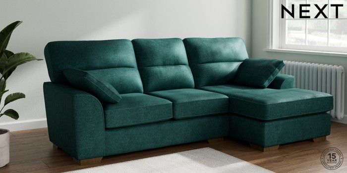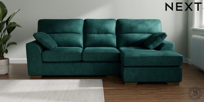 7.2.10 Stamford Highback Medium Sofa Chaise - Right Hand Plush Chenille Dark Teal Green Large Square Angle - Mid | Made Click here to use our website with more accessibility support, for example screen readers